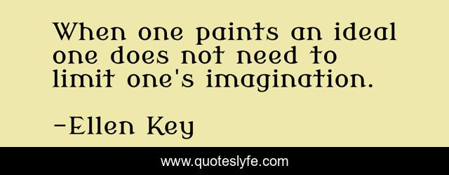This page presents the quote "When one paints an ideal one does not need to limit one's imagination.". Author of this quote is Ellen Key. .