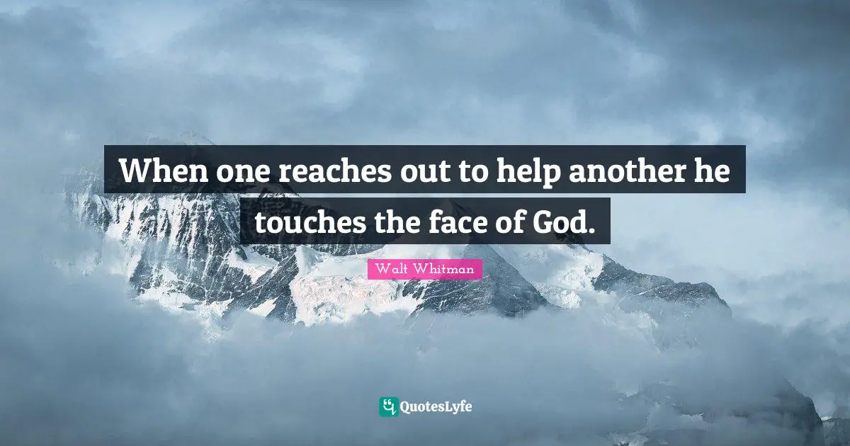 This page presents the quote "When one reaches out to help another he touches the face of God.". Author of this quote is Walt Whitman. This quote is about god, faces, helping, teacher,.