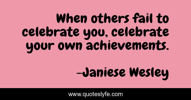 This page presents the quote "When others fail to celebrate you, celebrate your own achievements.". Author of this quote is Janiese Wesley. .