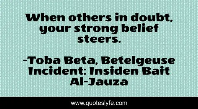 This page presents the quote "When others in doubt, your strong belief steers.". Author of this quote is Toba Beta, Betelgeuse Incident: Insiden Bait Al-Jauza. This quote is about steer, doubt, belief, strong,.