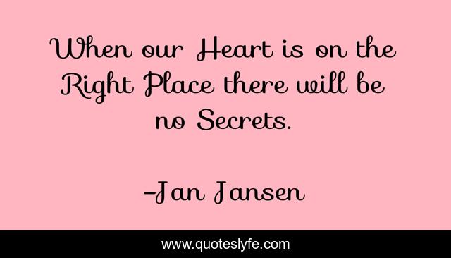 This page presents the quote "When our Heart is on the Right Place there will be no Secrets.". Author of this quote is Jan Jansen. .