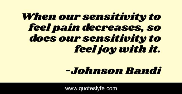 This page presents the quote "When our sensitivity to feel pain decreases, so does our sensitivity to feel joy with it.". Author of this quote is Johnson Bandi. This quote is about joy, sensitivity, love, affection, pain,.