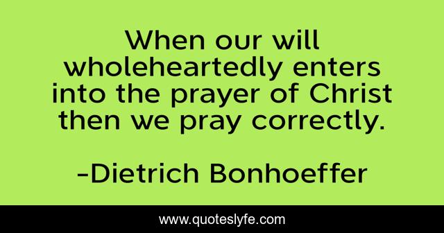 This page presents the quote "When our will wholeheartedly enters into the prayer of Christ then we pray correctly.". Author of this quote is Dietrich Bonhoeffer. .