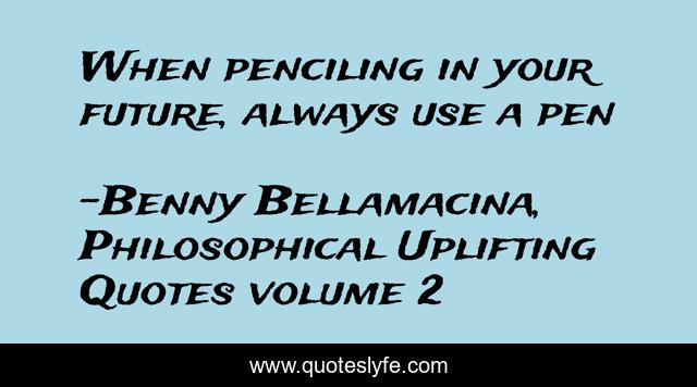 "Benny Bellamacina, Philosophical Uplifting Quotes volume 2 Quotes." Quoteslyfe.com, 2025. Sat. 06 Dec. 2025. <https://www.quoteslyfe.com/quote/When-penciling-in-your-future-always-use-98896>.