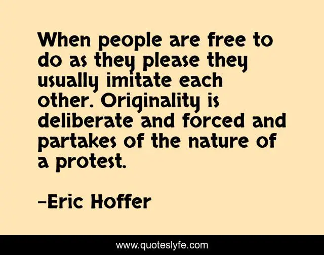 This page presents the quote "When people are free to do as they please they usually imitate each other. Originality is deliberate and forced and partakes of the nature of a protest.". Author of this quote is Eric Hoffer. .