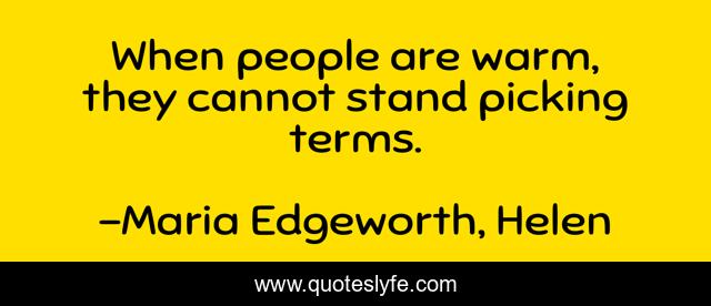 This page presents the quote "When people are warm, they cannot stand picking terms.". Author of this quote is Maria Edgeworth, Helen. This quote is about incongruity, language, terminology,.