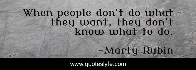 This page presents the quote "When people don't do what they want, they don't know what to do.". Author of this quote is Marty Rubin. This quote is about desire, confusion, indecision,.