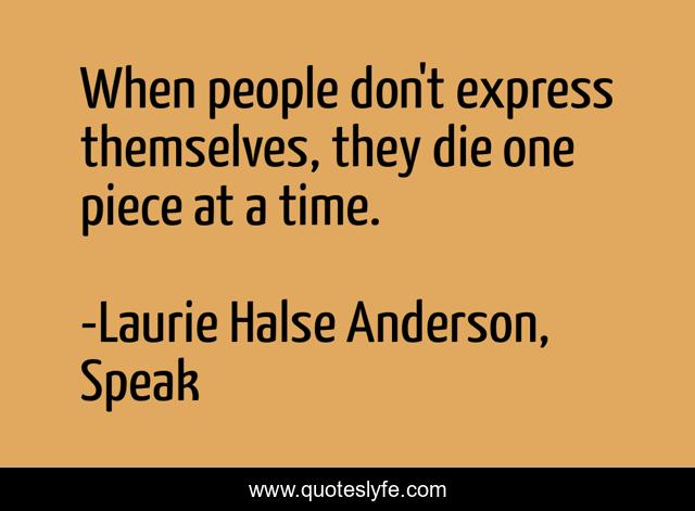 "Laurie Halse Anderson, Speak Quotes." Quoteslyfe.com, 2025. Mon. 08 Dec. 2025. <https://www.quoteslyfe.com/quote/When-people-don-t-express-themselves-they-3788>.
