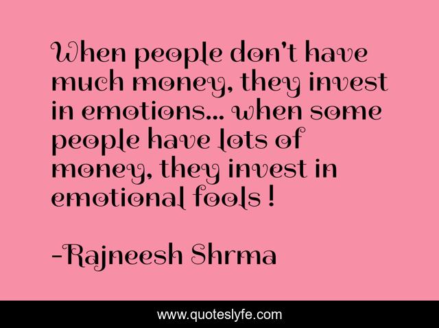 This page presents the quote "When people don't have much money, they invest in emotions... when some people have lots of money, they invest in emotional fools !". Author of this quote is Rajneesh Shrma. This quote is about relationships, life, life-and-living,.