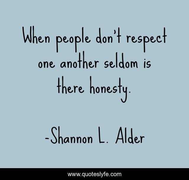 This page presents the quote "When people don’t respect one another seldom is there honesty.". Author of this quote is Shannon L. Alder. This quote is about disrespect, false-kindness, honesty, lost, hypocrisy, betrayers, dishonest, revenge, political-games,.