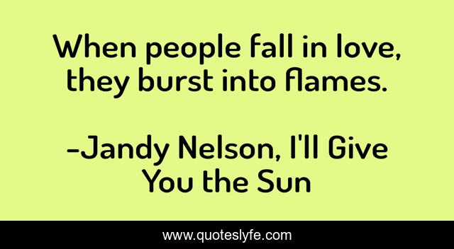 This page presents the quote "When people fall in love, they burst into flames.". Author of this quote is Jandy Nelson, I'll Give You the Sun. This quote is about love, affection,.