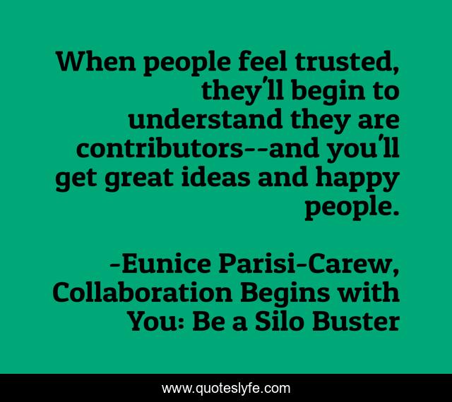 "Eunice Parisi-Carew, Collaboration Begins with You: Be a Silo Buster Quotes." Quoteslyfe.com, 2025. Sat. 06 Dec. 2025. <https://www.quoteslyfe.com/quote/When-people-feel-trusted-they-ll-begin-65151>.