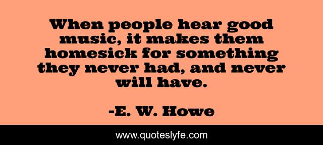 This page presents the quote "When people hear good music, it makes them homesick for something they never had, and never will have.". Author of this quote is E. W. Howe. This quote is about good, people,.
