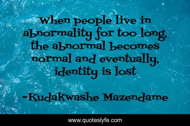 This page presents the quote "When people live in abnormality for too long, the abnormal becomes normal and eventually, identity is lost". Author of this quote is Kudakwashe Mazendame. .