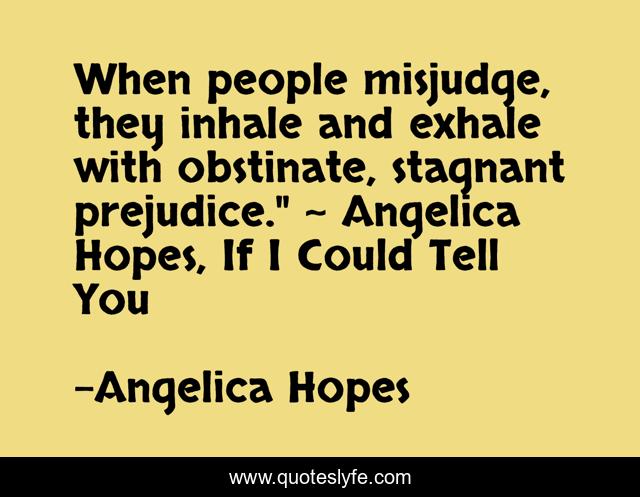 When people misjudge, they inhale and exhale with obstinate, stagnant prejudice." ~ Angelica Hopes, If I Could Tell You
