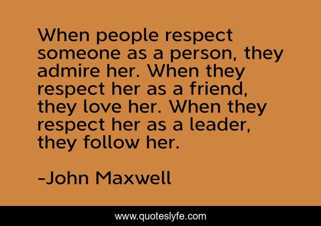 This page presents the quote "When people respect someone as a person, they admire her. When they respect her as a friend, they love her. When they respect her as a leader, they follow her.". Author of this quote is John Maxwell. .