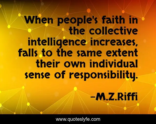 This page presents the quote "When people's faith in the collective intelligence increases, falls to the same extent their own individual sense of responsibility.". Author of this quote is M.Z.Riffi. .