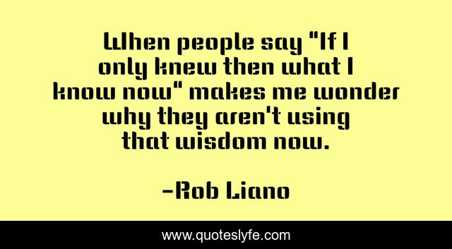 This page presents the quote "When people say "If I only knew then what I know now" makes me wonder why they aren't using that wisdom now.". Author of this quote is Rob Liano. This quote is about accountability, wisdom,.