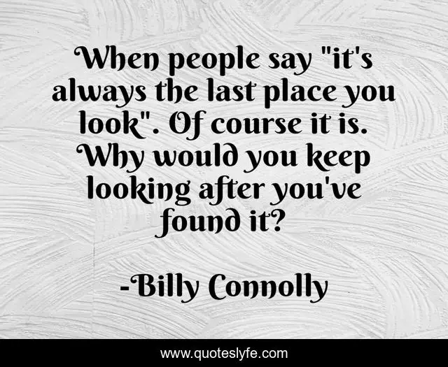 This page presents the quote "When people say "it's always the last place you look". Of course it is. Why would you keep looking after you've found it?". Author of this quote is Billy Connolly. This quote is about humor, lost,.
