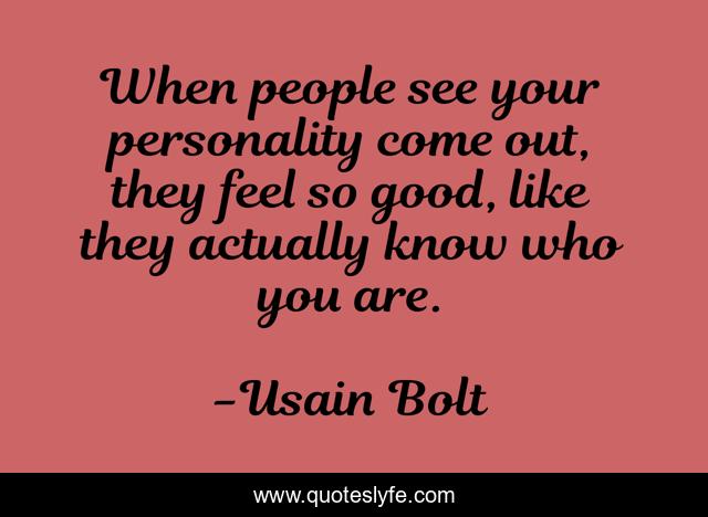 This page presents the quote "When people see your personality come out, they feel so good, like they actually know who you are.". Author of this quote is Usain Bolt. This quote is about personality, people,.