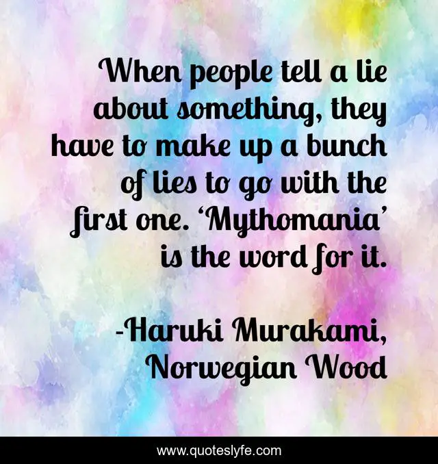 "Haruki Murakami, Norwegian Wood Quotes." Quoteslyfe.com, 2025. Sat. 06 Dec. 2025. <https://www.quoteslyfe.com/quote/When-people-tell-a-lie-about-something-51133>.