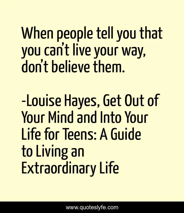 This page presents the quote "When people tell you that you can’t live your way, don’t believe them.". Author of this quote is Louise Hayes, Get Out of Your Mind and Into Your Life for Teens: A Guide to Living an Extraordinary Life. This quote is about courage, independence, personal-growth,.