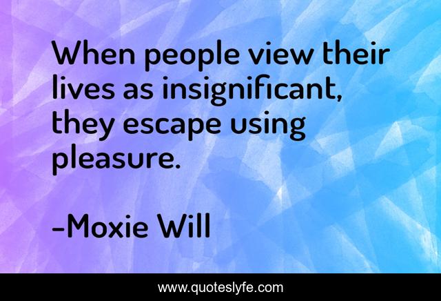 This page presents the quote "When people view their lives as insignificant, they escape using pleasure.". Author of this quote is Moxie Will. This quote is about meaning, alcoholism, happiness, escape,.