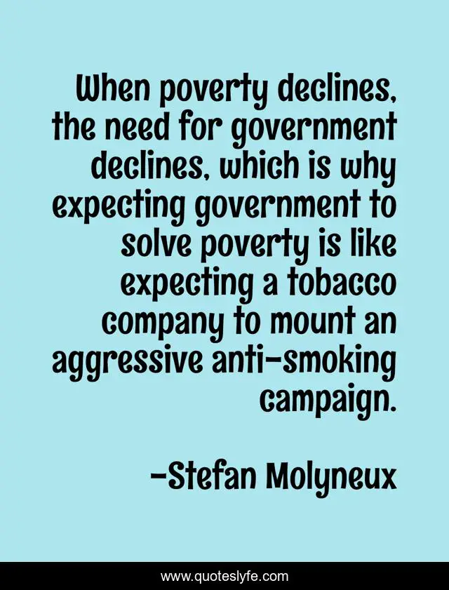 "Stefan Molyneux Quotes." Quoteslyfe.com, 2025. Mon. 08 Dec. 2025. <https://www.quoteslyfe.com/quote/When-poverty-declines-the-need-for-government-54459>.