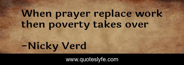 This page presents the quote "When prayer replace work then poverty takes over". Author of this quote is Nicky Verd. This quote is about motivation, positive-mind, focus-on-your-dreams, life, faith-in-god, inspirational, prayer, enthusiasm, mindset,.