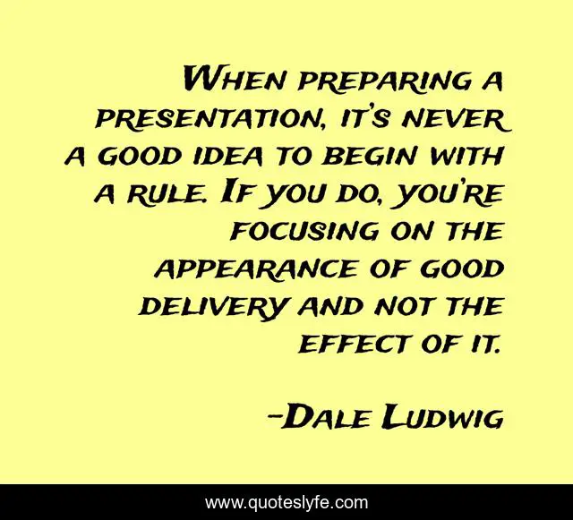 "Dale Ludwig Quotes." Quoteslyfe.com, 2025. Sat. 06 Dec. 2025. <https://www.quoteslyfe.com/quote/When-preparing-a-presentation-it-s-never-185464>.