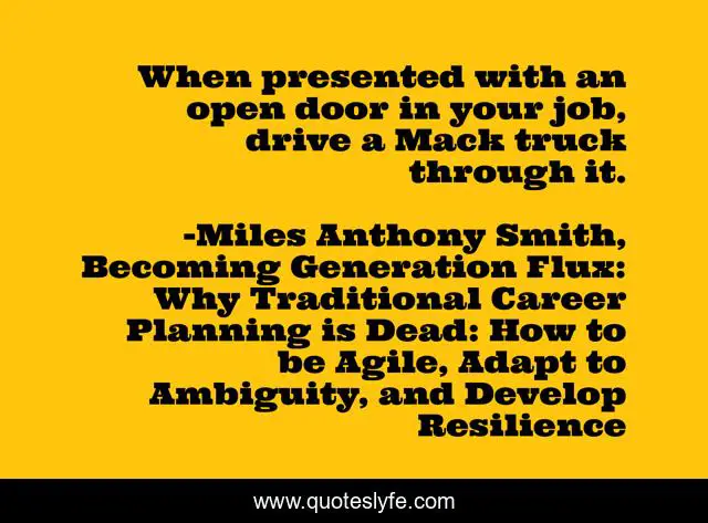 "Miles Anthony Smith, Becoming Generation Flux: Why Traditional Career Planning is Dead: How to be Agile, Adapt to Ambiguity, and Develop Resilience Quotes." Quoteslyfe.com, 2025. Fri. 05 Dec. 2025. <https://www.quoteslyfe.com/quote/When-presented-with-an-open-door-in-211269>.