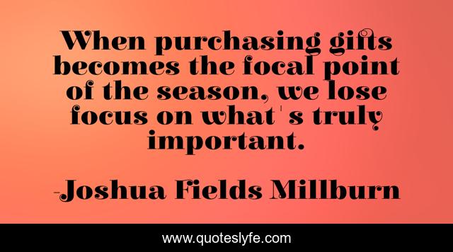 "Joshua Fields Millburn Quotes." Quoteslyfe.com, 2025. Sat. 06 Dec. 2025. <https://www.quoteslyfe.com/quote/When-purchasing-gifts-becomes-the-focal-point-220535>.