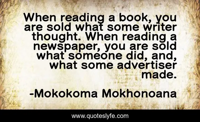 "Mokokoma Mokhonoana Quotes." Quoteslyfe.com, 2025. Mon. 08 Dec. 2025. <https://www.quoteslyfe.com/quote/When-reading-a-book-you-are-sold-151278>.