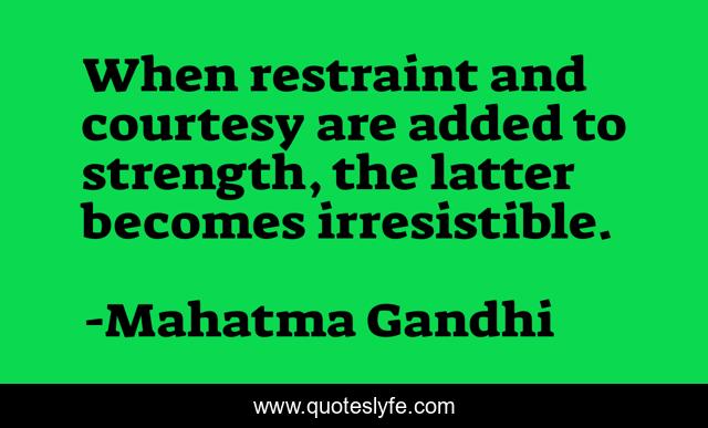 This page presents the quote "When restraint and courtesy are added to strength, the latter becomes irresistible.". Author of this quote is Mahatma Gandhi. This quote is about restraint, courtesy, latter,.