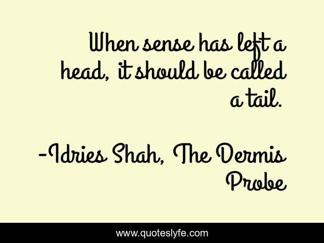 This page presents the quote "When sense has left a head, it should be called a tail.". Author of this quote is Idries Shah, The Dermis Probe. This quote is about proverb, sufis, sufism, wisdom,.
