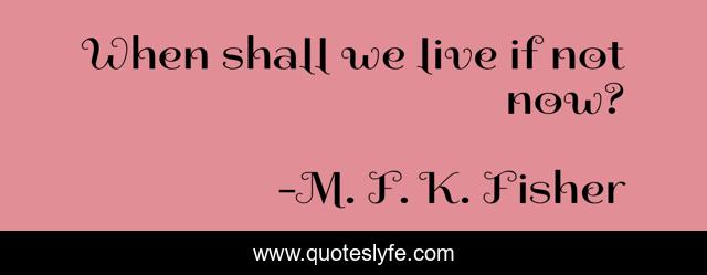 "M. F. K. Fisher Quotes." Quoteslyfe.com, 2025. Fri. 05 Dec. 2025. <https://www.quoteslyfe.com/quote/When-shall-we-live-if-not-now-277776>.