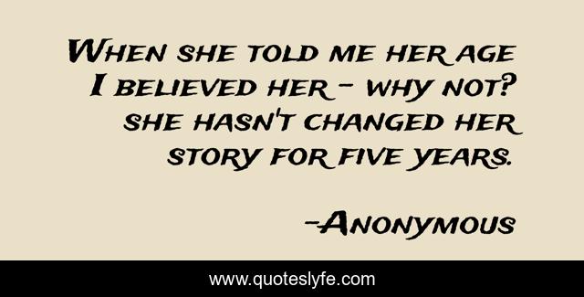This page presents the quote "When she told me her age I believed her - why not? she hasn't changed her story for five years.". Author of this quote is Anonymous. This quote is about age, birthdays,.