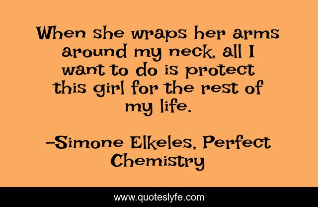This page presents the quote "When she wraps her arms around my neck, all I want to do is protect this girl for the rest of my life.". Author of this quote is Simone Elkeles, Perfect Chemistry. This quote is about romance, young-adult-fiction, young-adult-romance,.