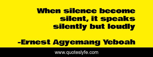 "Ernest Agyemang Yeboah Quotes." Quoteslyfe.com, 2025. Mon. 08 Dec. 2025. <https://www.quoteslyfe.com/quote/When-silence-become-silent-it-speaks-silently-168652>.