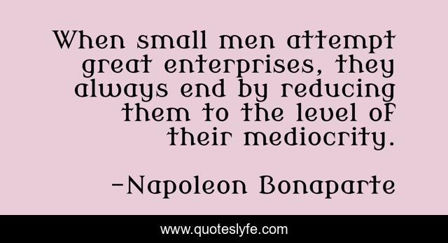 This page presents the quote "When small men attempt great enterprises, they always end by reducing them to the level of their mediocrity.". Author of this quote is Napoleon Bonaparte. This quote is about small, men, end,.
