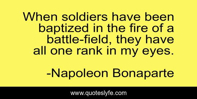 This page presents the quote "When soldiers have been baptized in the fire of a battle-field, they have all one rank in my eyes.". Author of this quote is Napoleon Bonaparte. This quote is about fire, soldiers, eyes,.