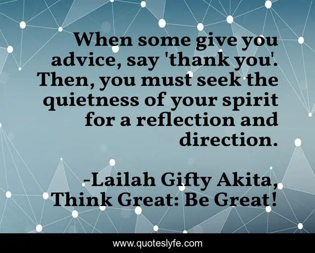 "Lailah Gifty Akita, Think Great: Be Great! Quotes." Quoteslyfe.com, 2025. Tue. 09 Dec. 2025. <https://www.quoteslyfe.com/quote/When-some-give-you-advice-say-thank-140366>.