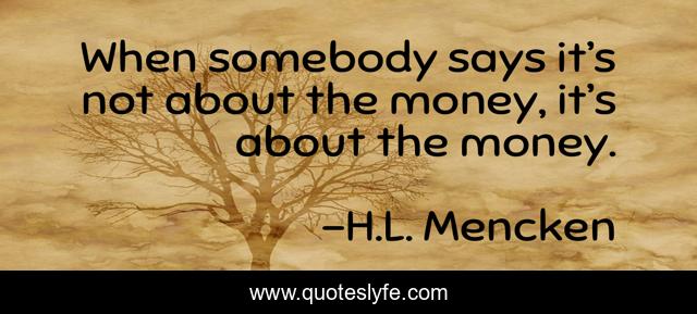 This page presents the quote "When somebody says it’s not about the money, it’s about the money.". Author of this quote is H.L. Mencken. This quote is about money, materialism,.