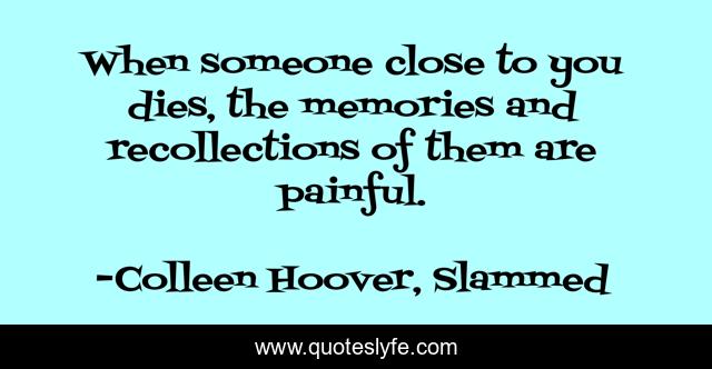 This page presents the quote "When someone close to you dies, the memories and recollections of them are painful.". Author of this quote is Colleen Hoover, Slammed. .
