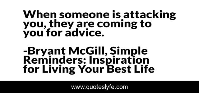 This page presents the quote "When someone is attacking you, they are coming to you for advice.". Author of this quote is Bryant McGill, Simple Reminders: Inspiration for Living Your Best Life. This quote is about teaching, advice, attack,.