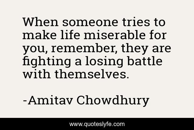 This page presents the quote "When someone tries to make life miserable for you, remember, they are fighting a losing battle with themselves.". Author of this quote is Amitav Chowdhury. This quote is about hostility, motivation, behavior,.