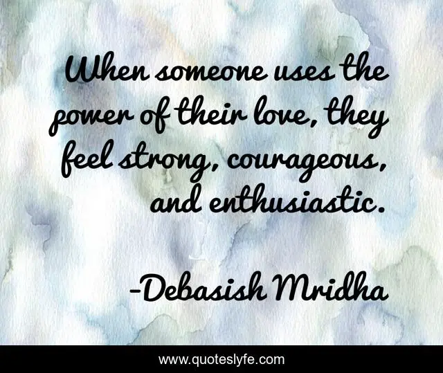 This page presents the quote "When someone uses the power of their love, they feel strong, courageous, and enthusiastic.". Author of this quote is Debasish Mridha. This quote is about life, love, knowledge, inspirational, intelligence, philosophy, wisdom, quotes, affection,.