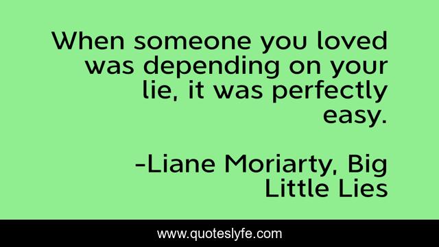 This page presents the quote "When someone you loved was depending on your lie, it was perfectly easy.". Author of this quote is Liane Moriarty, Big Little Lies. This quote is about lies, protection,.