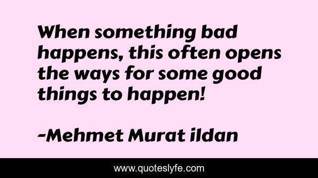This page presents the quote "When something bad happens, this often opens the ways for some good things to happen!". Author of this quote is Mehmet Murat ildan. .