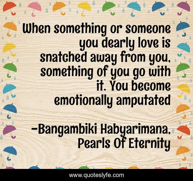 "Bangambiki Habyarimana, Pearls Of Eternity Quotes." Quoteslyfe.com, 2025. Fri. 05 Dec. 2025. <https://www.quoteslyfe.com/quote/When-something-or-someone-you-dearly-love-49881>.